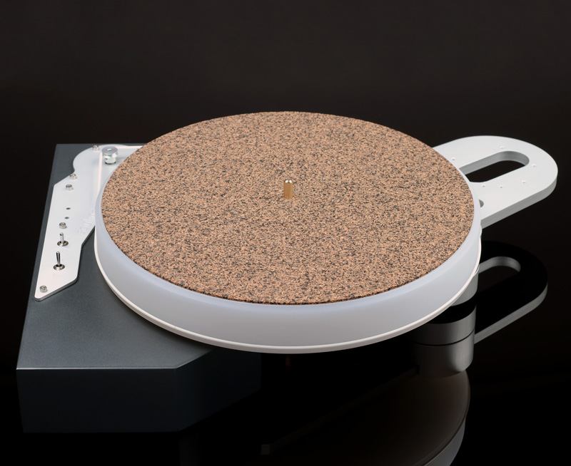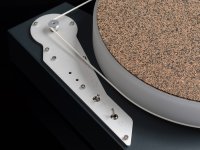 Main plinth is made from the three 20mm thick layers of MDF bonded together and coated in durable graphite gray color, containing fine aluminum dust participles improving damping. Main chassis is supported by two silicone rubber grommets. Wing shaped, one piece sub-plinth is machined from solid aluminum, and it is 4-point coupled to the main plinth by means of rubber-cork washers of different dimensions and diameters, providing a good vibration and damping control.