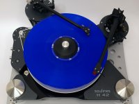 - multi layered Acrylic/aluminum/Stainless Steel construction where are all the main parts like plinth, sub-plinth, motor pod and each of 3 isolation feet are 3-point or 4-point coupled over the differently sized rubber-cork washers for damping